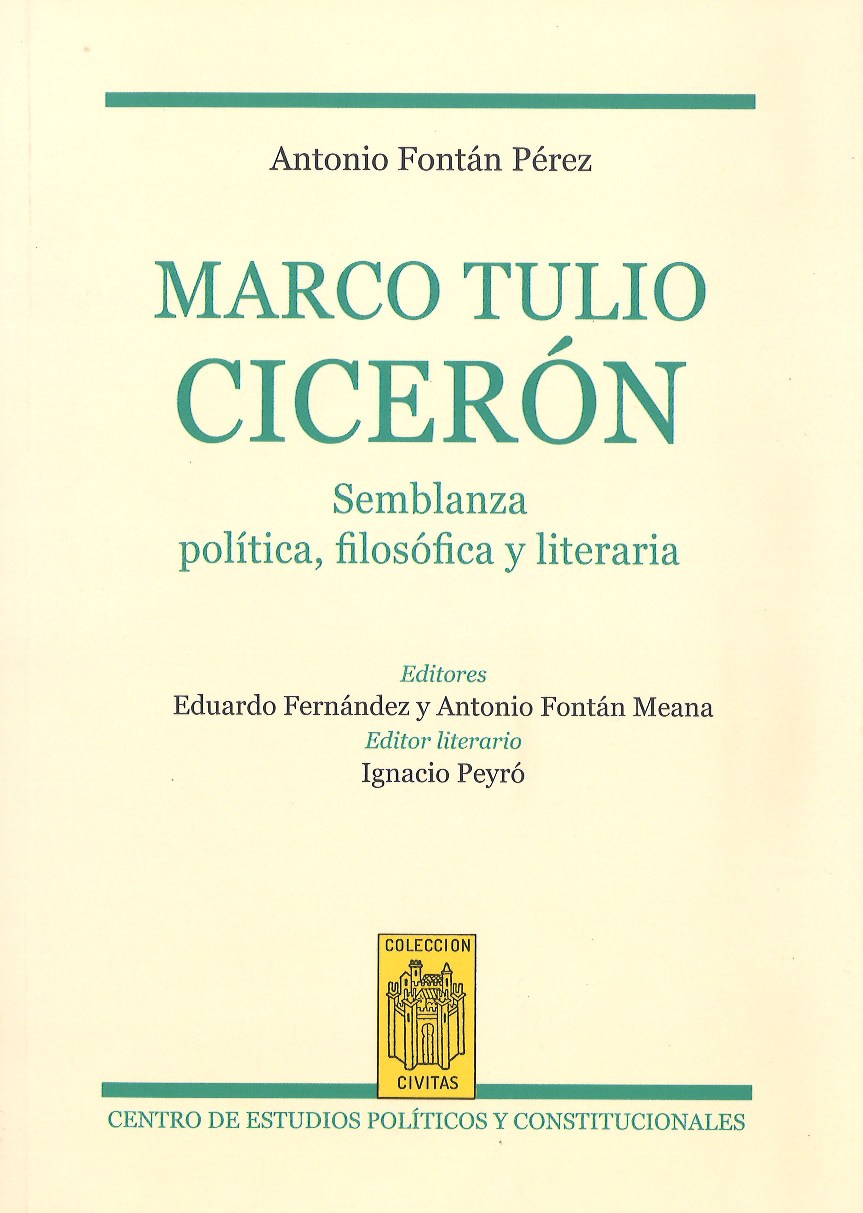 Ver productosObra póstuma de Antonio Fontán, editada por uno de sus discípulos, Eduardo Fernández, y uno de sus familiares, Antonio Fontán Meana: "Marco Tulio Cicerón. Semblanza política, filosófica y literaria" ha sido publicado en el Centro de Estudios Políticos y Constitucionales, en la colección Civitas