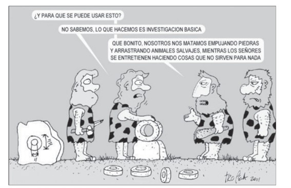 Según muestra la viñeta, desde el principio de los tiempos la frontera entre investigación e innovación ha sido indeterminada, siendo motivo de constantes debates en los círculos políticos y profesionales1.