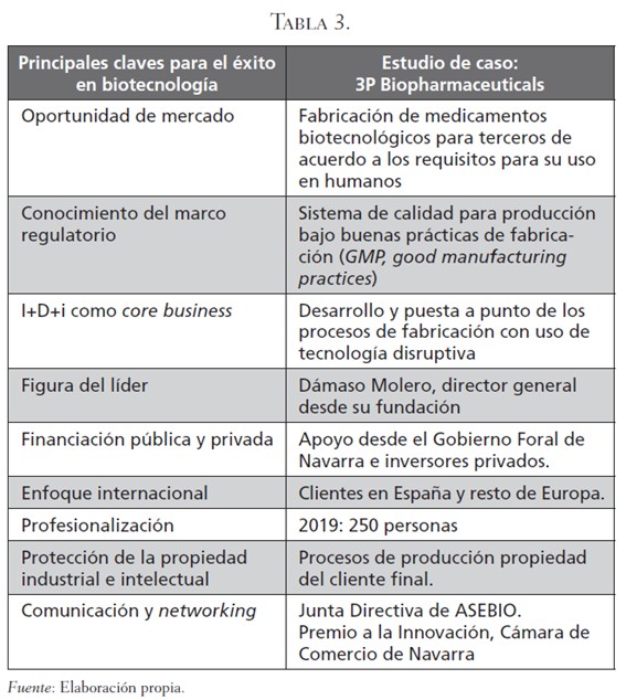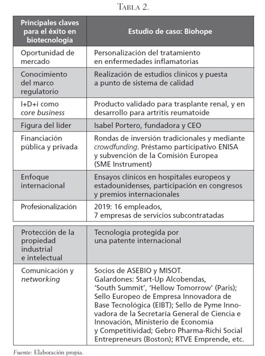 Para el desarrollo del presente artículo, se han seleccionado dos empresas biotecnológicas españolas que se han desarrollado y consolidado con éxito durante los últimos años: Biohope y 3p Biopharmaceuticals. La primera de ellas se enmarca como empresa de I+D+i basada en el desarrollo de productos sanitarios de diagnóstico in vitro para la personalización del tratamiento en enfermedades inflamatorias, mientras que 3P es una empresa de fabricación por contrato (CMO, Contract Manufacturing Organization) de medicamentos biotecnológicos.